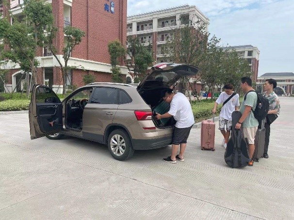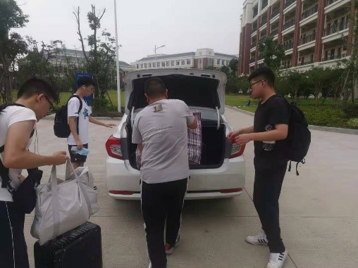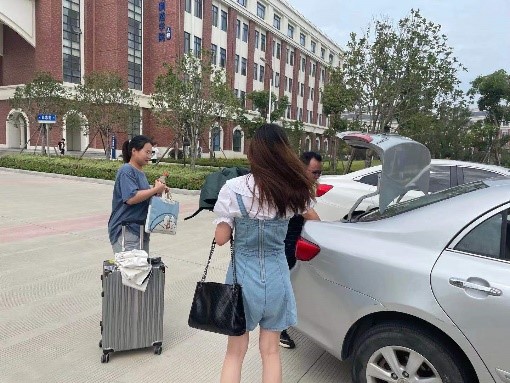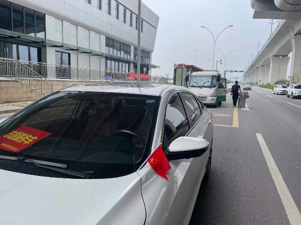 早上8点,光电党总支党员老师的11辆私家车已经在光电B幢楼下依次排开,他们迎来了第一批结束期末考试离校的员工“乘客”。老师们戴着党徽精神抖擞,提起员工厚重的行李放置车辆后备箱,用亲切的笑容把员工们迎上车。员工们一声声“谢谢”,是对老师的最好答谢。