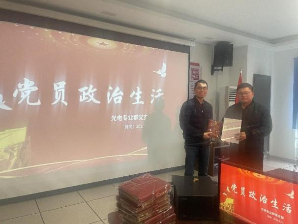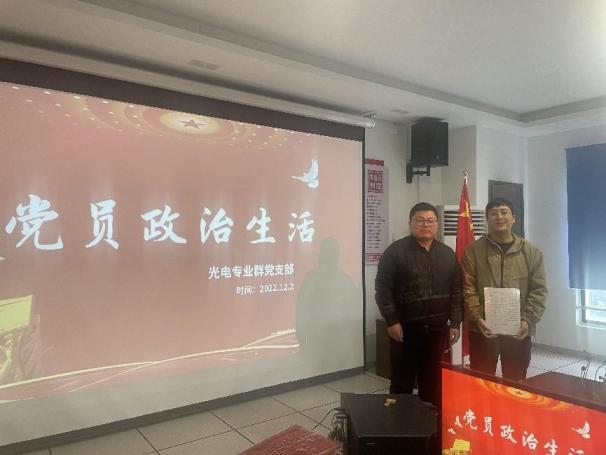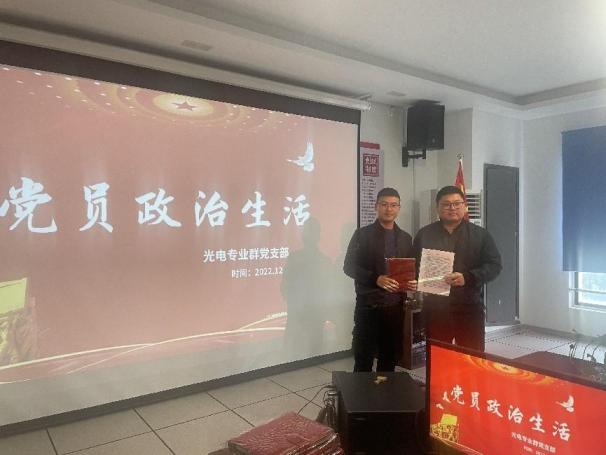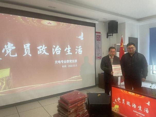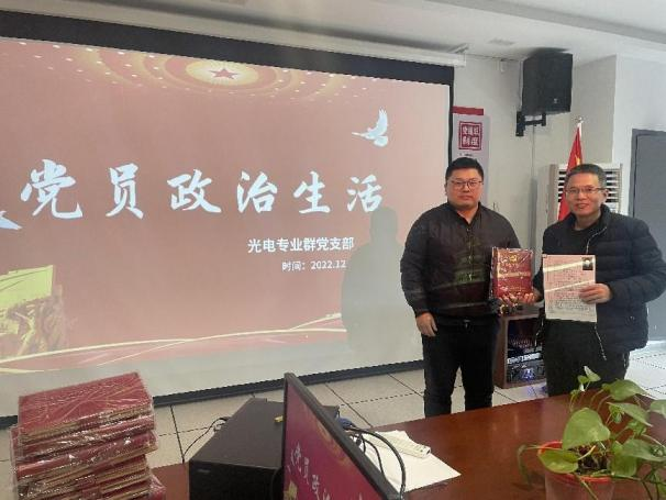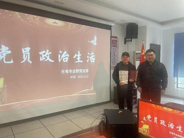 为落实中共中央《关于加强党的政治建设的意见》的要求,坚持和完善重温入党誓词、党员过“政治生日”等政治仪式,光电专业群党支部于12月2日在光电B栋517党员之家召开下半年度党员政治生日主题党日活动,会议由支部副书记金露凡主持,支部全体党员参加。