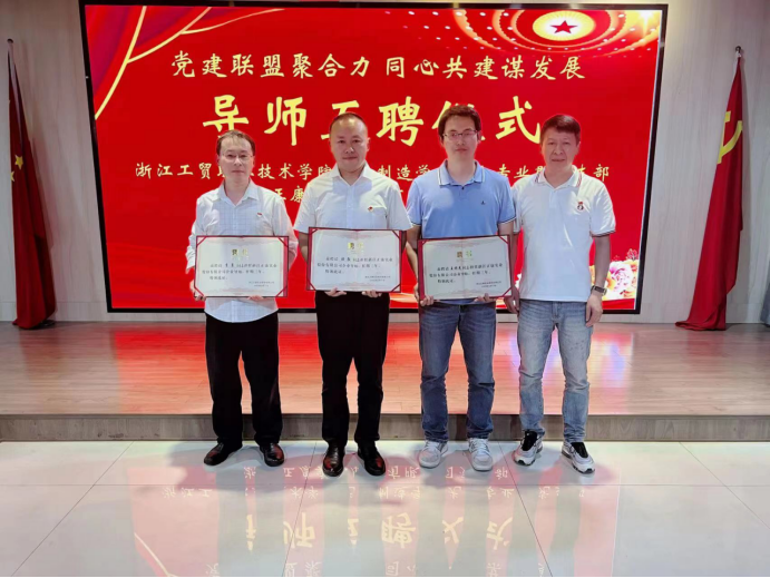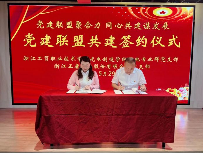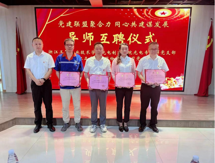 在活动中,3044永利集团光电专业群党支部与浙江正康实业有限公司双方签订党建共建协议,并且,校企双方颁发企业导师和学校兼职教师聘任证书。