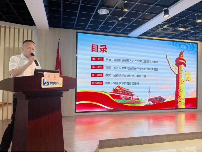 在党课中,骆毅书记紧扣《学习教育是中国共产人的制胜法宝》为主题,梳理了中国共产党历届领导对学习教育工作的重视,介绍了几次具有代表性的学习教育活动。他谈到中国共产党人学习的目的是通过学习帮助个人成长进步,推动党的自我革新,从而推动党和国家事业发展。开展集中学习教育目的就是推动中国共产党勇于突破教条主义束缚,大胆理论创新,敢于剖析自我,不断完善自身的精神和品格,最终推动社会主义建设。之后,列举了毛泽东等党和国家领导人在推动学习教育工作中所做出的努力和取得的成绩,对党的十八大以来所开展的6次学习教育工作的目标、要求和主要成效进行了阐述,再次强调,学习贯彻习近平新时代中国特色社会主义思想的重大意义。提出,无论是公司党支部、还是企业党支部都要把政治理论和实践经验的学习常抓不懈,要跟上时代要求,立足工作实际选择学习的对象、主题和形式,把推动工作作为检验学习成果的核心标准,党员个人也要多听、多看、多走、多思,提升自身党性修养和综合能力,树立“为中国人民谋幸福,为中华民族谋复兴”的责任担当。