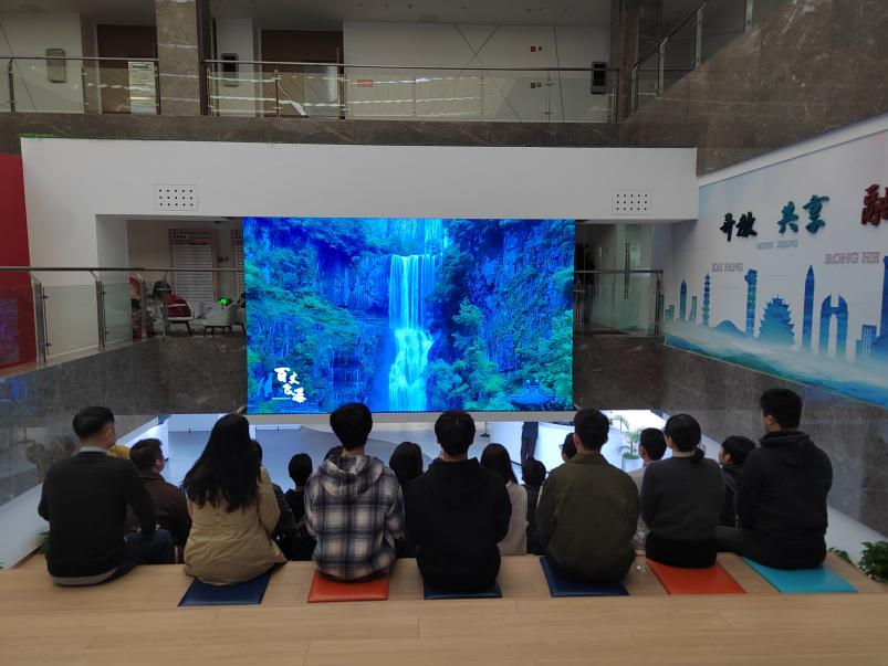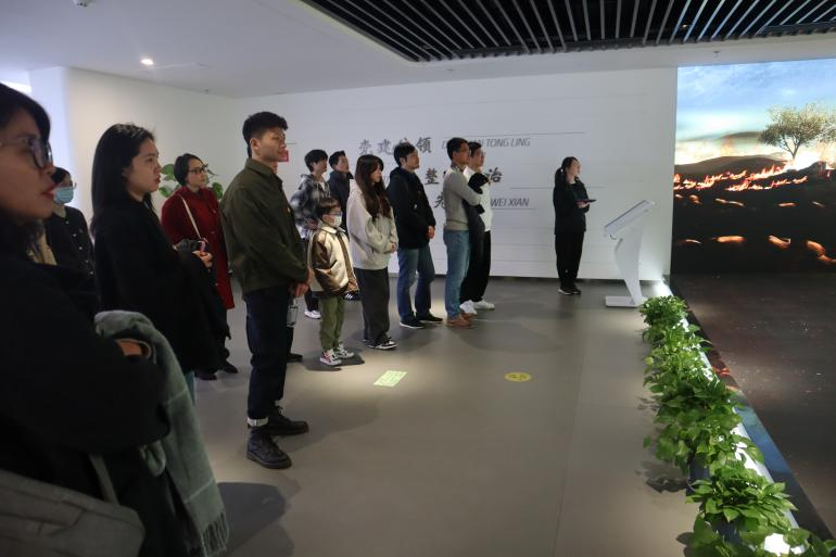 三个支部党员一行先来到“瓯江红”党建人才综合体,综合体巧妙地运用数字化技术向广大党员同志呈现百年党史发展历程,以数字大展屏形式将温州百年奋斗历程中弥足珍贵的革命史料和红色印记进行拼接,全方位向大家阐释温州革命史中酝酿的伟大革命精神。